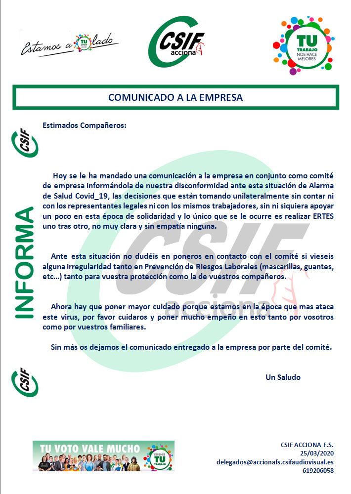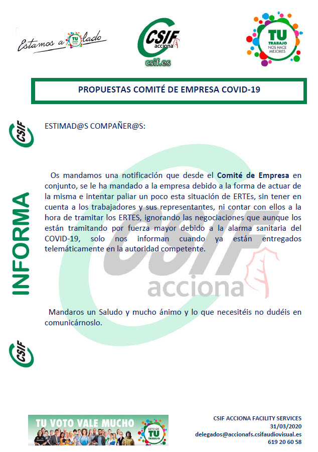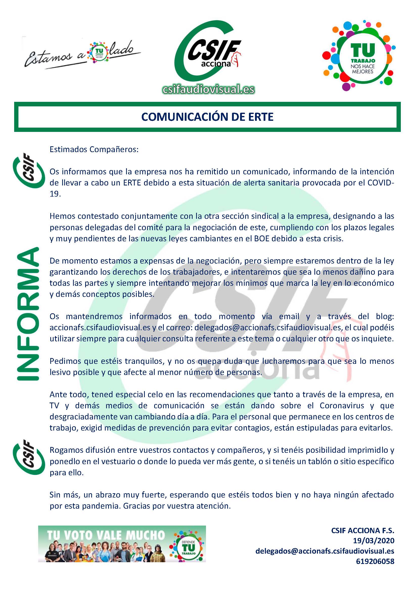 Os pasamos una nota importante sobre la intención de la empresa de llevar a cabo un ERTE. 20200319 INFORMA AFS