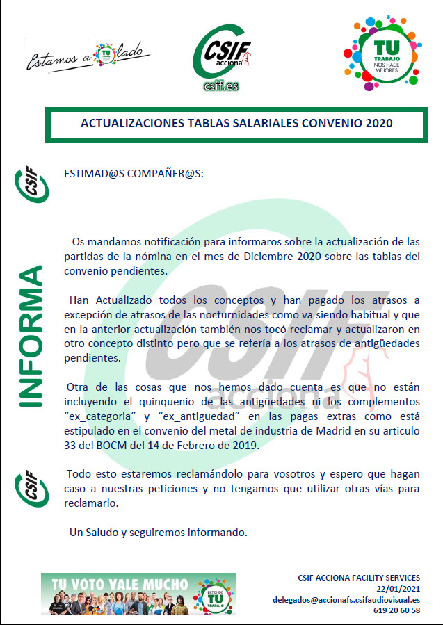 Adjuntamos información sobre los atrasos del Año 2020 y que hemos reclamado a la empresa. ACTUALIZACIONES CONVENIO 2020