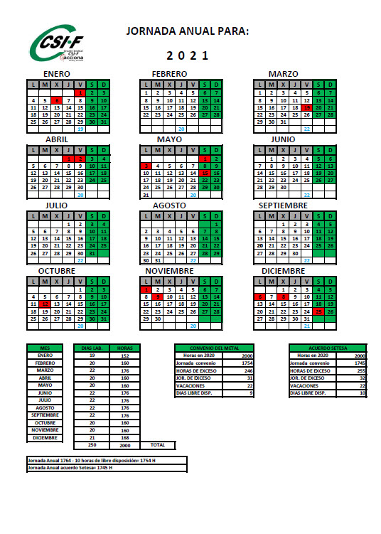 Os pasamos la Jornada anual para 2021 y los dias de Exceso de Jornada: Visualizar Archivo: JORNADA ANUAL2021